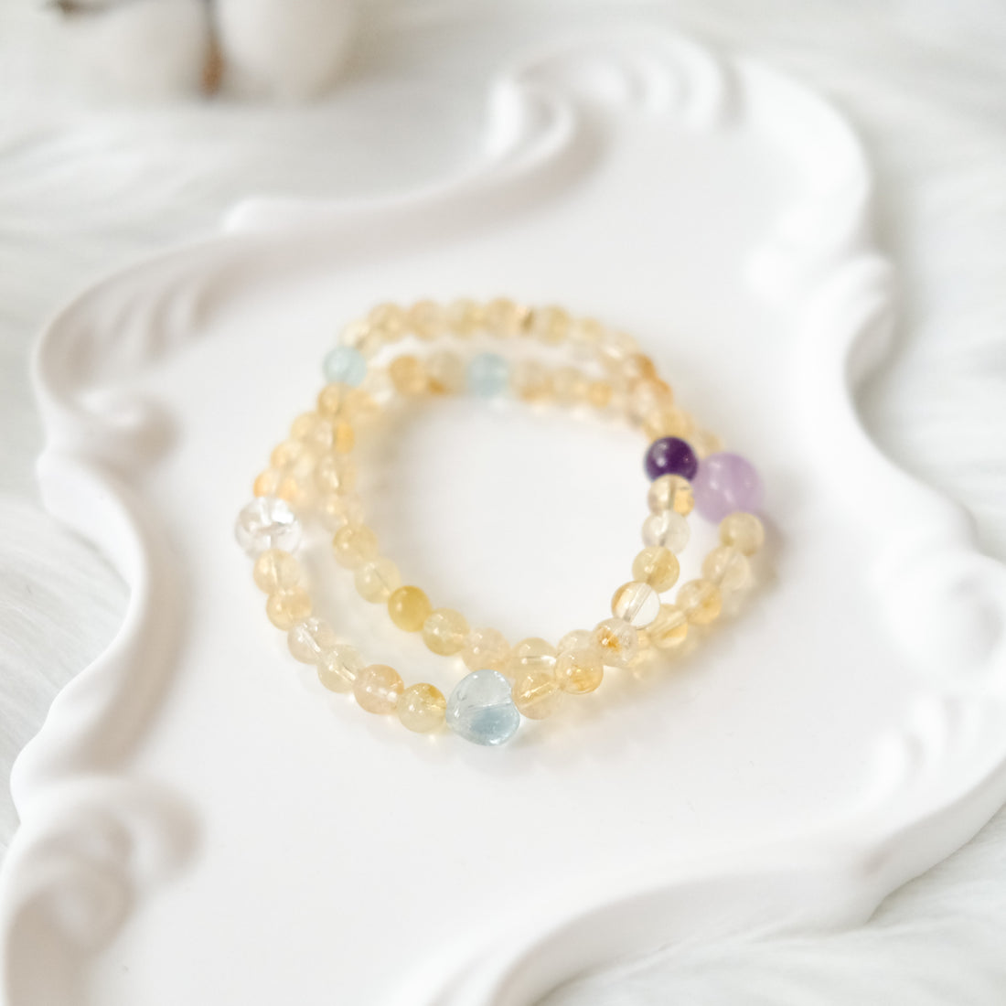 Inner Peace & Balance Rainbow– Citrine, Aquamarine, Rose Quartz & Amethyst Bracelet