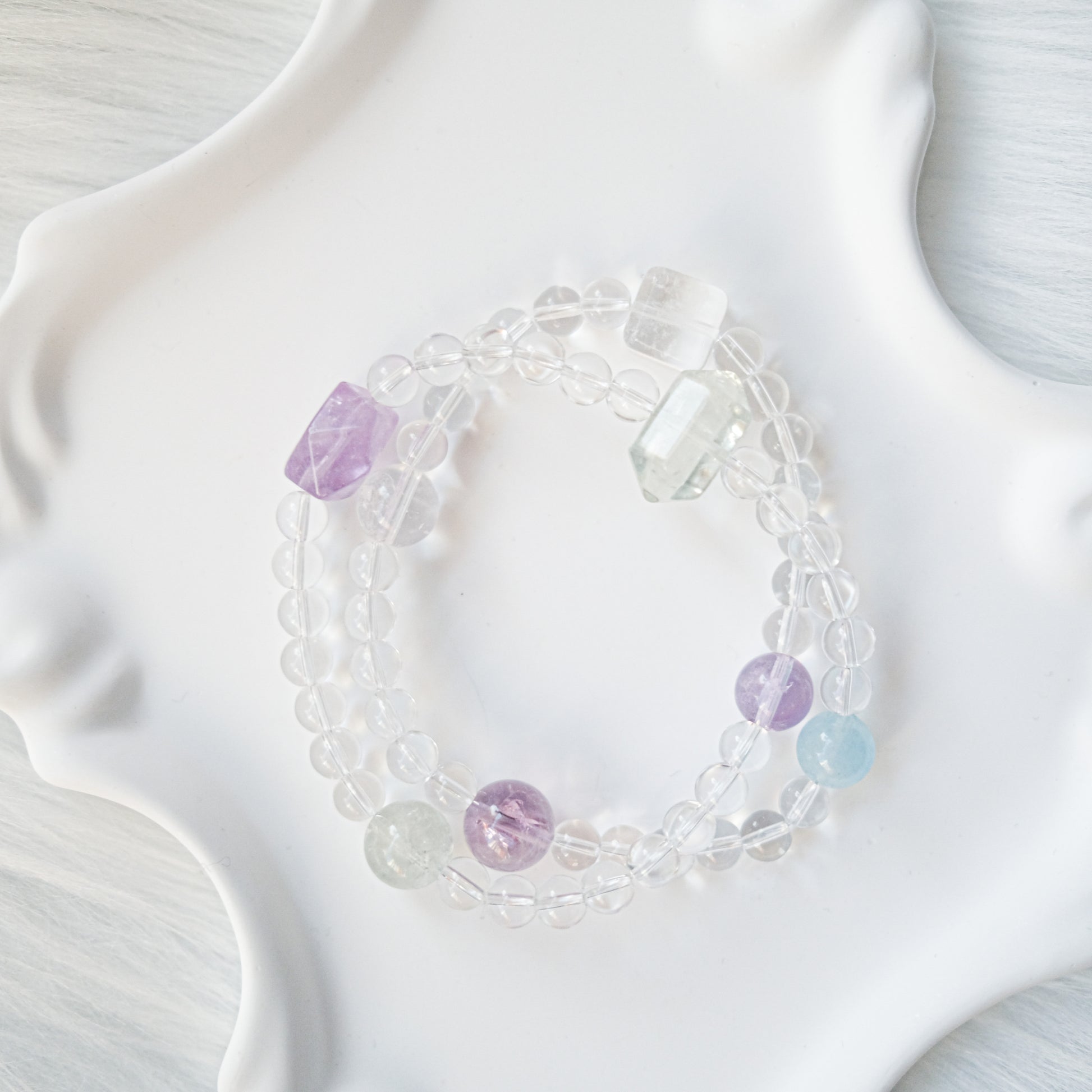 Clarity & Emotional Balance – Amethyst, Green Quartz & Aquamarine Bracelet