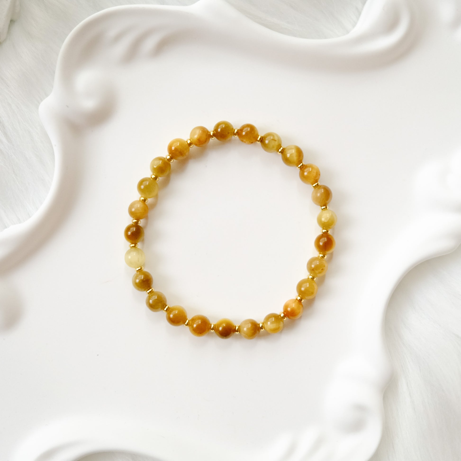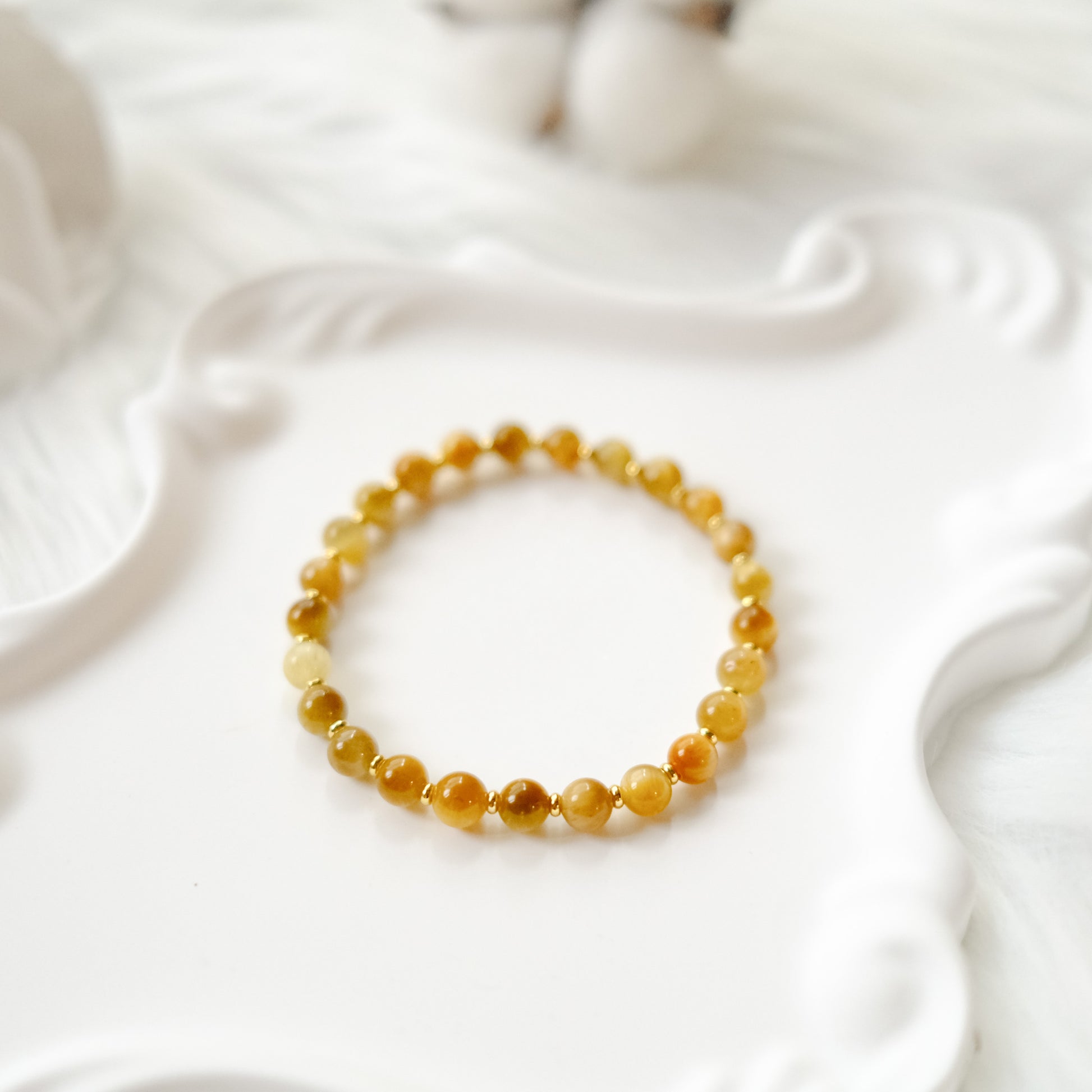 Our single-strand bracelets are crafted with approximately 6 mm natural gemstone beads with Gold/Silver - Plated Brass Beads and weigh around 12 g in total.