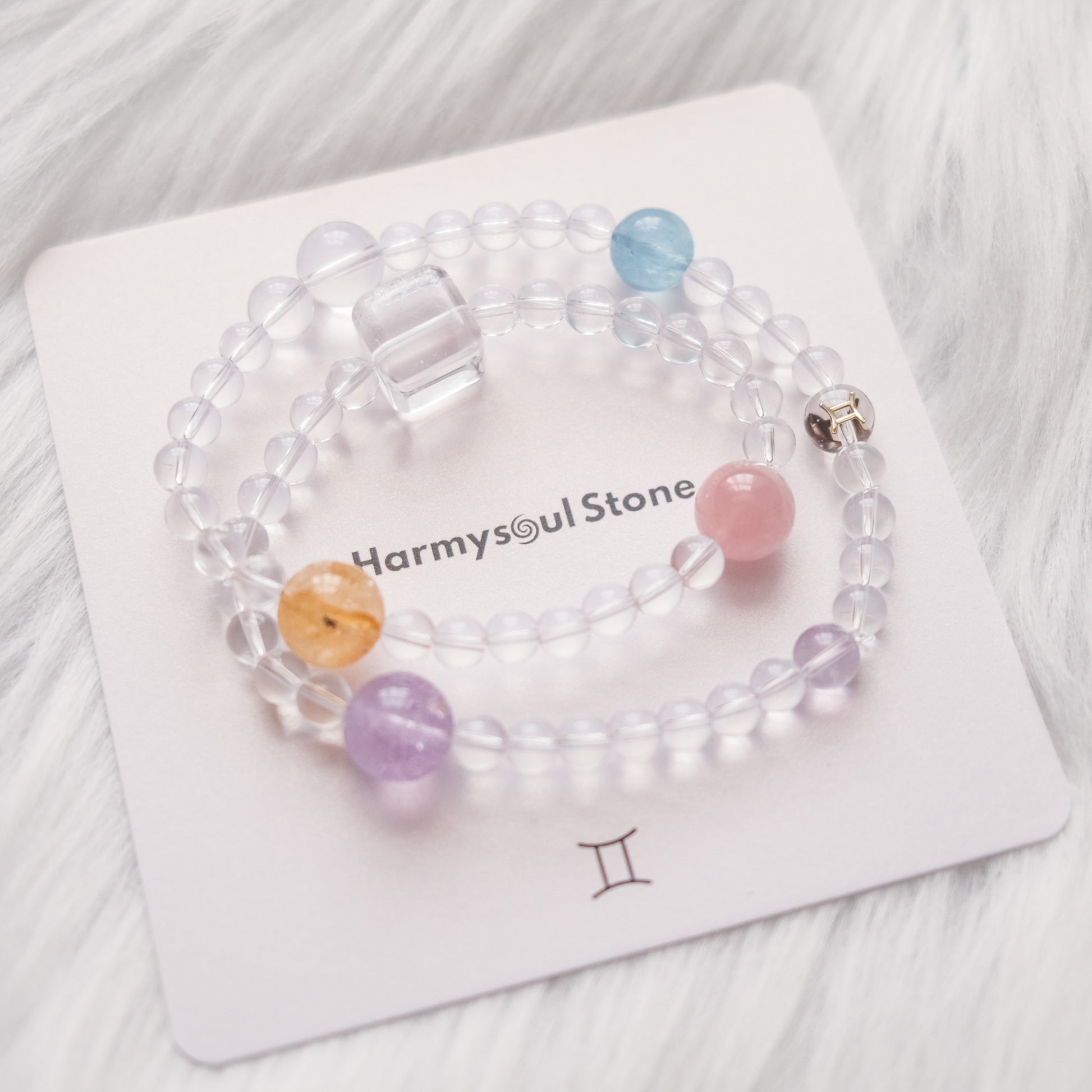 Handcrafted with natural gemstones, this double layer design reflects Gemini’s dual nature — one layer grounding the mind, the other encouraging movement and flow.