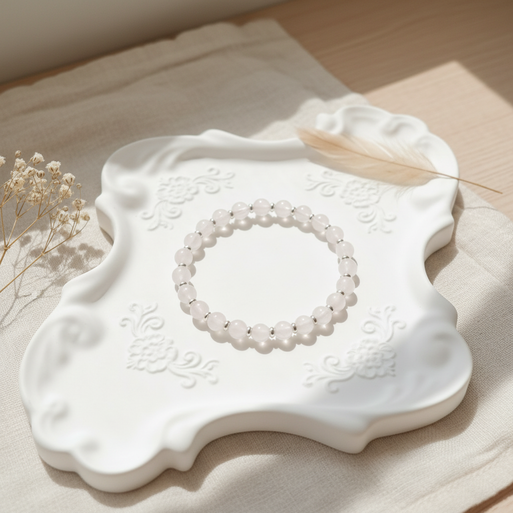 Soft as morning light and gentle as a quiet breath, this Milky Quartz bracelet brings emotional clarity and a peaceful sense of inner stillness.