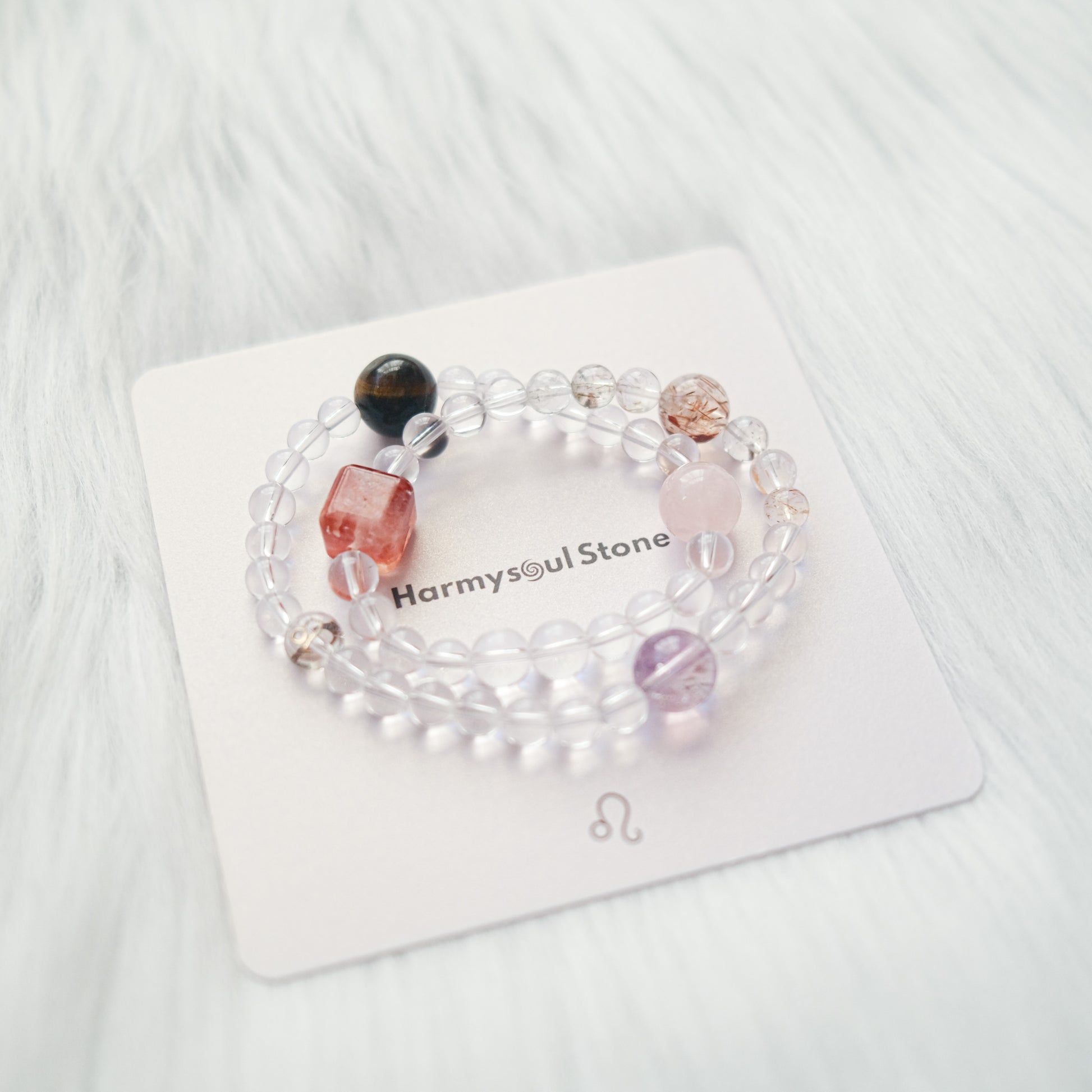 Handcrafted with natural gemstones, this double layer design reflects Leo’s essence — one layer radiating warmth and power, the other offering grounding and refinement.